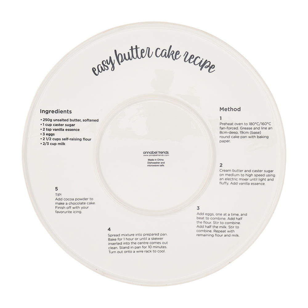 This round ceramic serving plate combines functionality with charming design, featuring detailed dog illustrations and the playful "Did Someone Say Cake" artwork. Ideal for cake enthusiasts, it includes a bonus Easy Butter Cake recipe printed on the back, making it a perfect gift for both dog lovers and baking aficionados. Durable and stylish, it adds a delightful touch to any celebration or gathering.